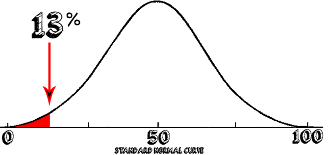 The score you have entered means that the individual who took the test is at the thirteenth percentile – their percentile rank is 13%. This means that the student had a test score greater than or equal to 13% of the reference population. Conversely, 87% of students scored equal to or higher than the individual tested. For further information on how percentile ranks work, we recommend the MathIsFun page on Percentile Rank.