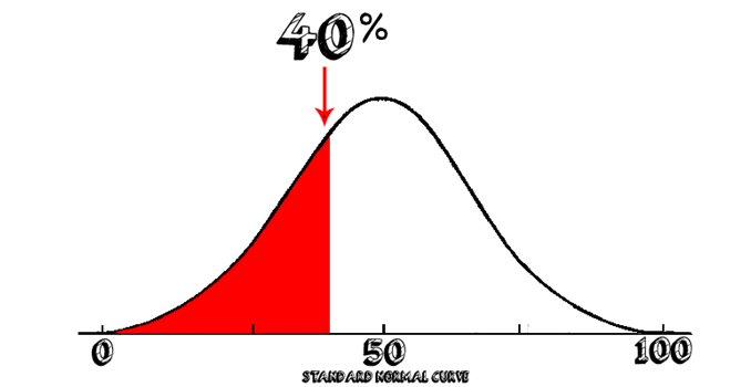 The score you have entered means that the individual who took the test is at the fourtieth percentile – their percentile rank is 40%. This means that the student had a test score greater than or equal to 40% of the reference population. Conversely, 60% of students scored equal to or higher than the individual tested. For further information on how percentile ranks work, we recommend the MathIsFun page on Percentile Rank.