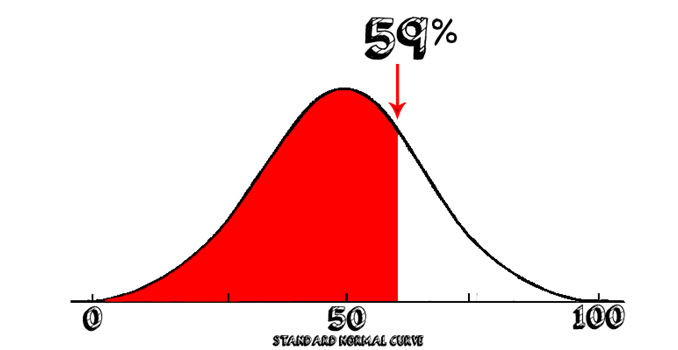 The score you have entered means that the individual who took the test is at the fifty-ninth percentile – their percentile rank is 59%. This means that the student had a test score greater than or equal to 59% of the reference population. Conversely, 41% of students scored equal to or higher than the individual tested. For further information on how percentile ranks work, we recommend the MathIsFun page on Percentile Rank.