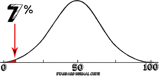 The score you have entered means that the individual who took the test is at the seventh percentile – their percentile rank is 7%. This means that the student had a test score greater than or equal to 7% of the reference population. Conversely, 93% of students scored equal to or higher than the individual tested. For further information on how percentile ranks work, we recommend the MathIsFun page on Percentile Rank.