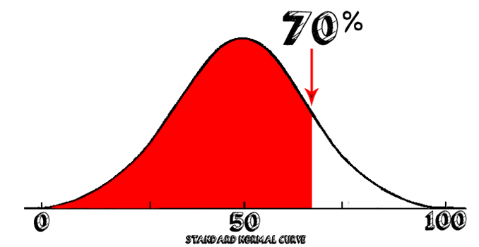 The score you have entered means that the individual who took the test is at the seventieth percentile – their percentile rank is 70%. This means that the student had a test score greater than or equal to 70% of the reference population. Conversely, 30% of students scored equal to or higher than the individual tested. For further information on how percentile ranks work, we recommend the MathIsFun page on Percentile Rank.