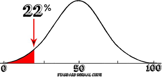 The score you have entered means that the individual who took the test is at the twenty-second percentile – their percentile rank is 22%. This means that the student had a test score greater than or equal to 22% of the reference population. Conversely, 78% of students scored equal to or higher than the individual tested. For further information on how percentile ranks work, we recommend the MathIsFun page on Percentile Rank.