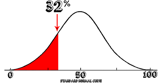 The score you have entered means that the individual who took the test is at the thirty-second percentile – their percentile rank is 32%. This means that the student had a test score greater than or equal to 32% of the reference population. Conversely, 68% of students scored equal to or higher than the individual tested. For further information on how percentile ranks work, we recommend the MathIsFun page on Percentile Rank.