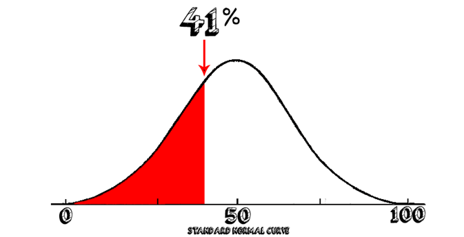 The score you have entered means that the individual who took the test is at the fourty-first percentile – their percentile rank is 41%. This means that the student had a test score greater than or equal to 41% of the reference population. Conversely, 59% of students scored equal to or higher than the individual tested. For further information on how percentile ranks work, we recommend the MathIsFun page on Percentile Rank.