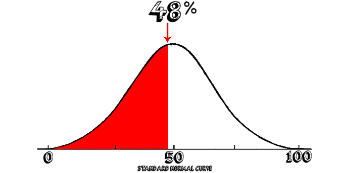 The score you have entered means that the individual who took the test is at the fourty-eighth percentile – their percentile rank is 48%. This means that the student had a test score greater than or equal to 48% of the reference population. Conversely, 52% of students scored equal to or higher than the individual tested. For further information on how percentile ranks work, we recommend the MathIsFun page on Percentile Rank.