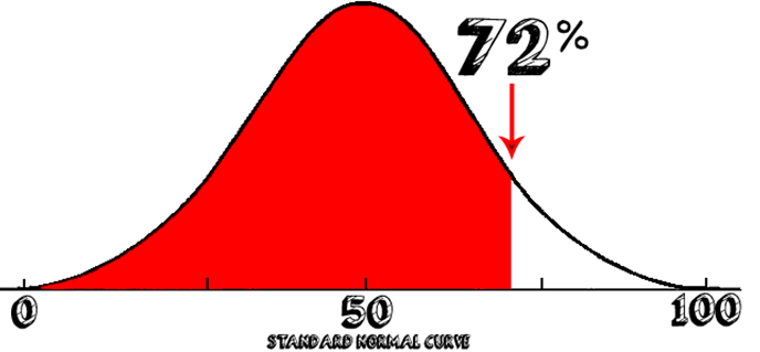 The score you have entered means that the individual who took the test is at the seventy-second percentile – their percentile rank is 72%. This means that the student had a test score greater than or equal to 72% of the reference population. Conversely, 28% of students scored equal to or higher than the individual tested. For further information on how percentile ranks work, we recommend the MathIsFun page on Percentile Rank.