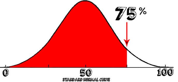 The score you have entered means that the individual who took the test is at the seventy-fifth percentile – their percentile rank is 75%. This means that the student had a test score greater than or equal to 75% of the reference population. Conversely, 25% of students scored equal to or higher than the individual tested. For further information on how percentile ranks work, we recommend the MathIsFun page on Percentile Rank.