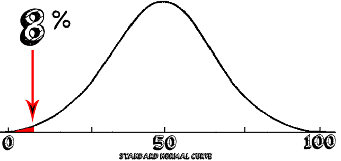 The score you have entered means that the individual who took the test is at the eighth percentile – their percentile rank is 8%. This means that the student had a test score greater than or equal to 8% of the reference population. Conversely, 92% of students scored equal to or higher than the individual tested. For further information on how percentile ranks work, we recommend the MathIsFun page on Percentile Rank.