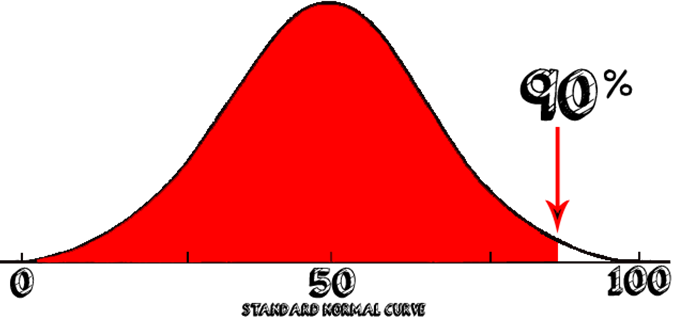 The score you have entered means that the individual who took the test is at the ninetieth percentile – their percentile rank is 90%. This means that the student had a test score greater than or equal to 90% of the reference population. Conversely, only 10% of students scored equal to or higher than the individual tested. For further information on how percentile ranks work, we recommend the MathIsFun page on Percentile Rank.